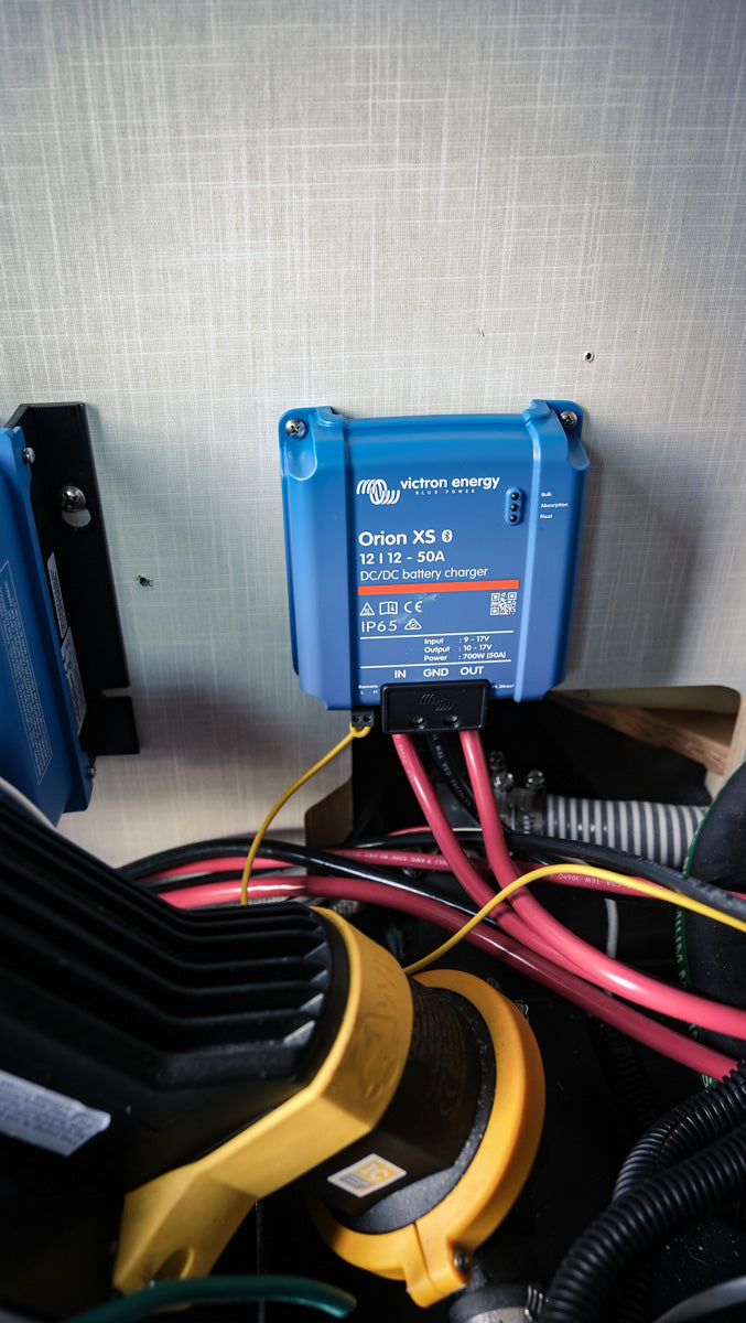 The kit comes with a pre-configured Victron 50a Orion DC to DC charger,fuses and wires required for installation